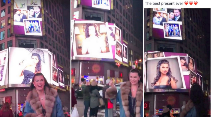 8 декабря в центре Манхэттена на одном из зданий показывали фотоколлажи Анастасии с Сергеем. Естественно журналисты предположили, что такой дорогой и романтический подарок мог сделать жене только любящий муж Рыбалка.