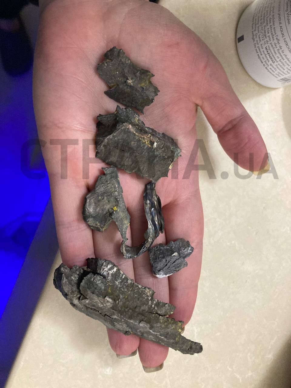 Осколки от снарядов на дне бассейна, где живут дельфины и белуги. Фото: "Страна"