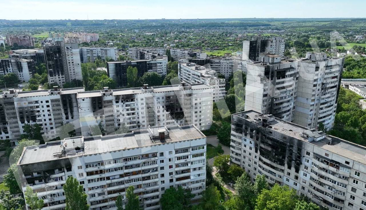Часть района — Северная Салтовка, — находится ближе всего к российской границе. Именно здесь оккупанты подошли вплотную к жилым массивам, обстреливая район. Среди сотен разбомбленных и обугленных после пожаров домов есть уцелевшие квартиры. Как в фильме об апокалипсисе, они напоминают о горстке счастливчиков, которым удалось выжить.