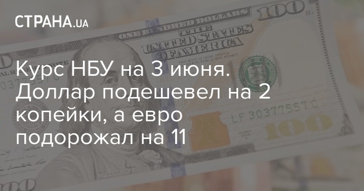 Курс НБУ на 3 июня. Доллар подешевел на 2 копейки, а евро подорожал на 11