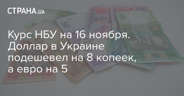 Курс НБУ на 16 ноября. Доллар в Украине подешевел на 8 копеек, а евро на 5