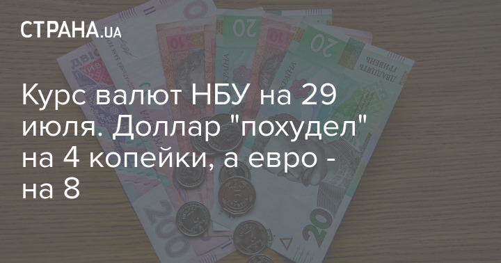 Курс валют НБУ на 29 июля. Доллар "похудел" на 4 копейки, а евро - на 8