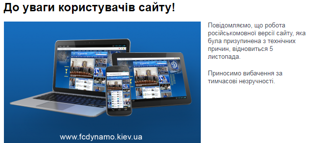 После того, как на официальном сайте киевского Динамо прекратила работать русскоязычная версия, в руководстве клуба заявили, что это произошло по техническим причинам и пообещали все восстановить.