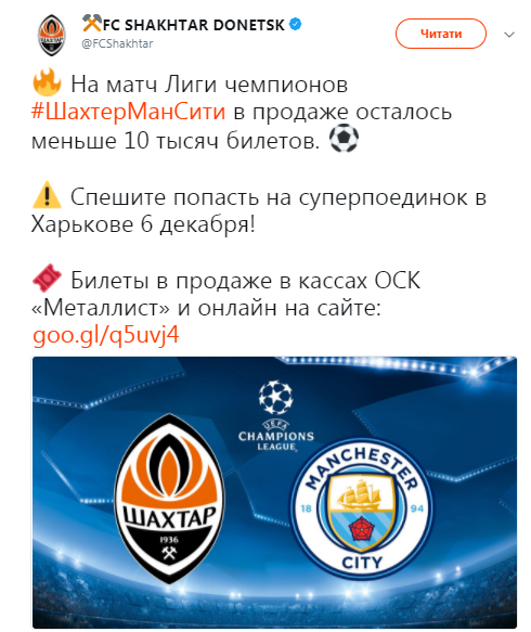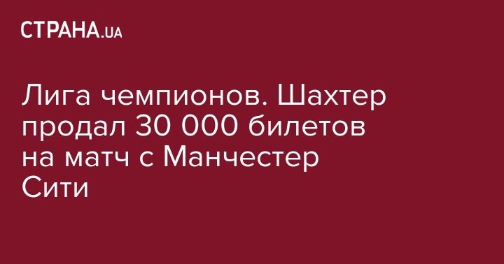 Лига чемпионов. Шахтер продал 30 000 билетов на матч с Манчестер Сити