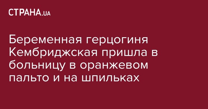 Беременная герцогиня Кембриджская пришла в больницу в оранжевом пальто и на шпильках