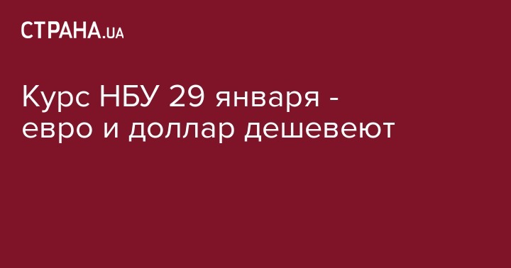 В понедельник, 29 января, Нацбанк установил официальный курс гривны по отношению к иностранным валютам. По сравнению с предыдущим рабочим днем, доллар и евро подешевели.