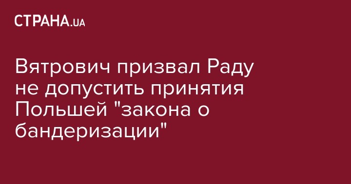 Директор украинского Института национальной памяти Украины Владимир Вятрович призвал Верховную Раду обратиться к польскому парламенту с заявлением о недопустимости принятия закона "о бандеризации".