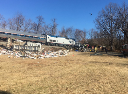 В США поезд, в котором ехали конгрессмены Республиканской партии, столкнулся с мусоровозом. В результате погиб один человек.