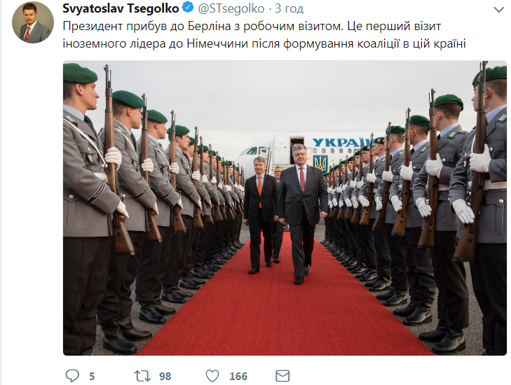 Президент Украины Петр Порошенко станет одним из первых иностранных лидеров, который будет находиться с визитом в Берлине после формирования нового правительства и переизбрания Ангелы Меркель федеральным канцлером.
