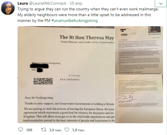 Британец получил от Терезы Мэй письмо с нецензурной бранью