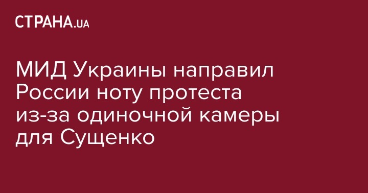 Министерство иностранных дел Украины направило российской стороне ноту протеста в связи с изменением обстоятельств содержания под стражей украинского журналиста Романа Сущенко, сообщила спикер МИД Марьяна Беца в своем Twitter.