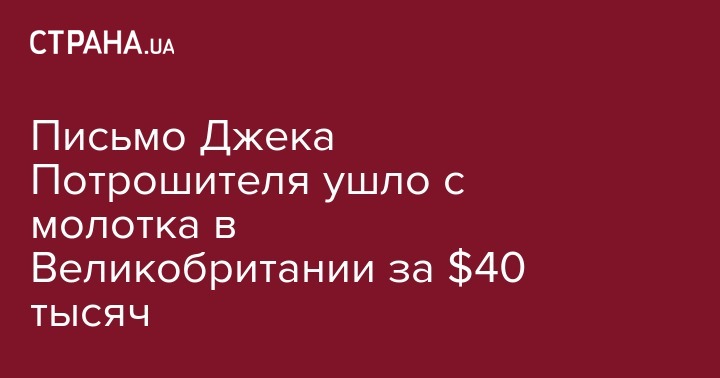 Письмо в полицию, автором которого мог быть известный во всем мире серийный убийца Джек Потрошитель, ушло в Великобритании с молотка почти за £30 тыс. ($41 тыс). Об этом сообщило агентство Press Association.