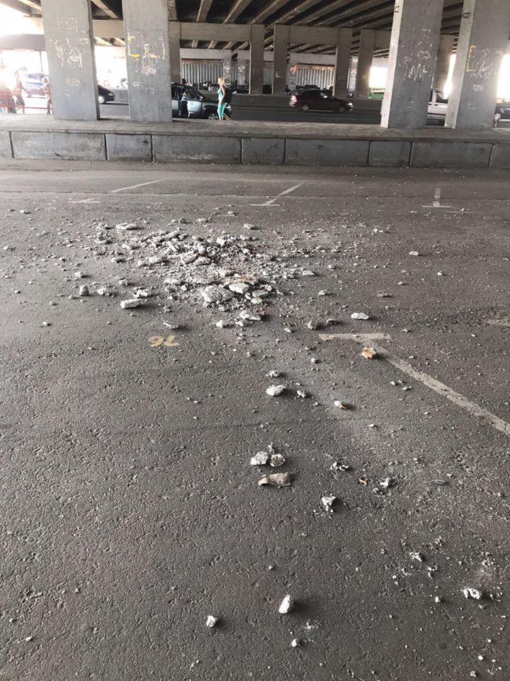 Очевидец происшествия киевлянин Александр Кравченко рассказал, что с моста посыпались камни, упав неподалеку от припаркованных машин. "Буквально, град из камней. Мимо проходили люди и хорошо, что никто не пострадал", - рассказал он.