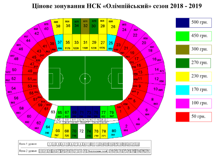 На игру доступны билеты следующих ценовых категорий: 50, 100, 170, 230, 270, 300, 450 и 500 гривен.
