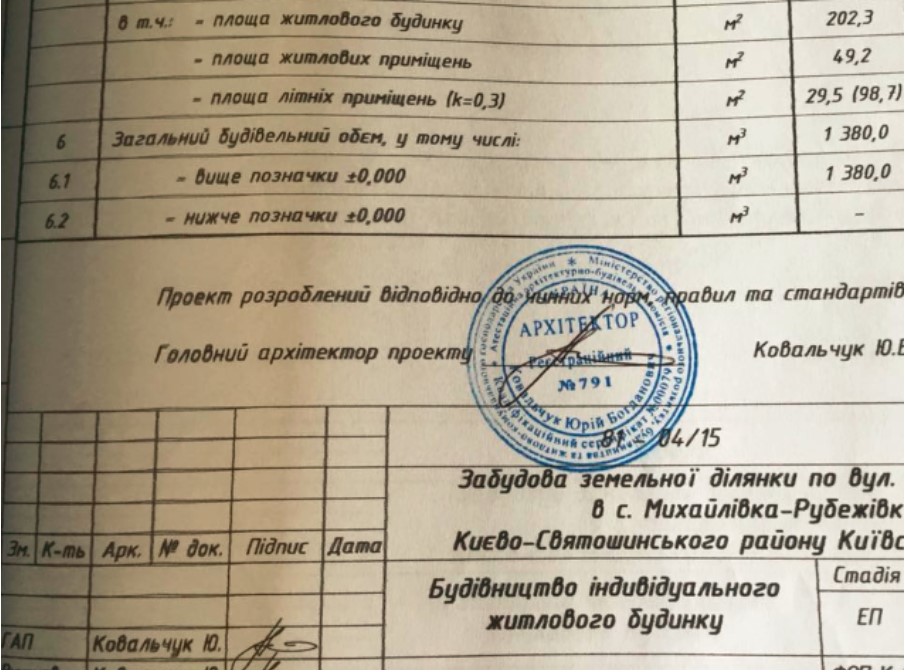 На фото проекта дома, который Сюмар выставила публично, есть цифры 01-04 / 15, который может свидетельствовать о том, что документ выдан в 2015 году.