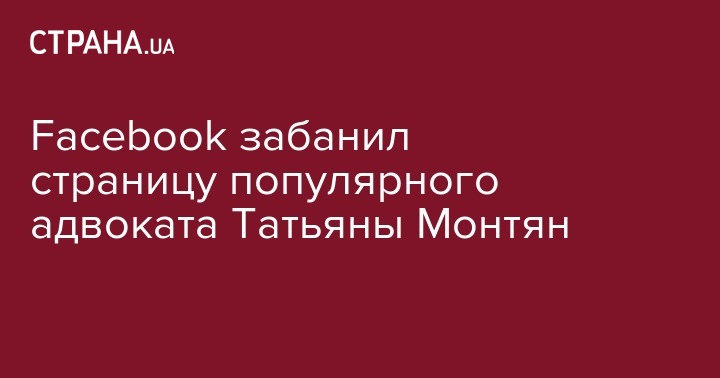 Администрация социальной сети Facebook забанила официальный аккаунт адвоката и блогера Татьяны Монтян на неопределенный срок, сообщают Украинские Новости. На заблокированной странице адвоката Монтян тем временем появились комментарии пользователей, которые выразили ей поддержку.