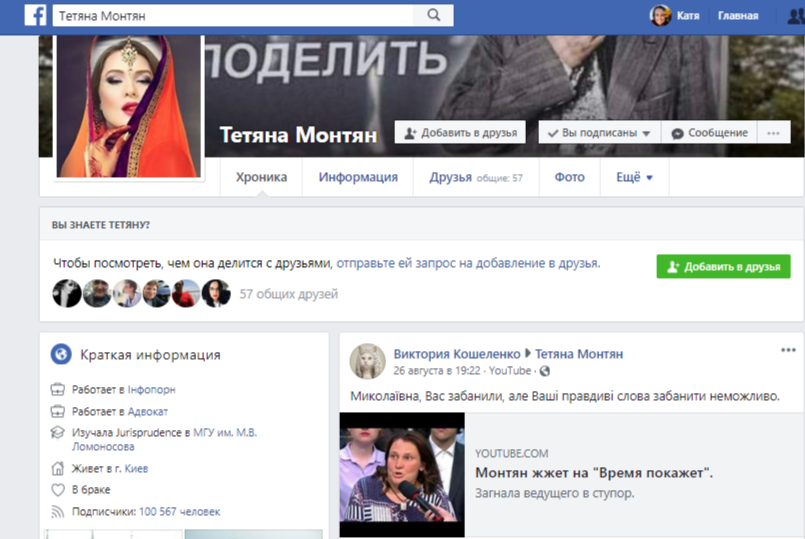 Facebook забанил страницу популярного адвоката Татьяны Монтян