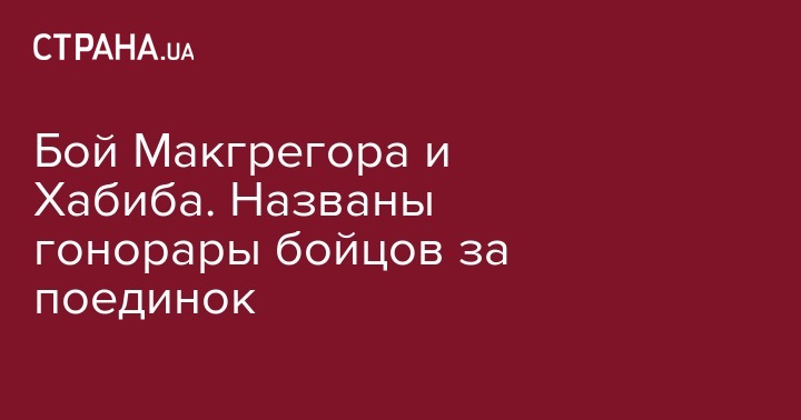 Названы гонорары бойцов Хабиба Нурмагомедова и Конора Макгрегора за их грядущий поединок. Об этом передает 1+1.