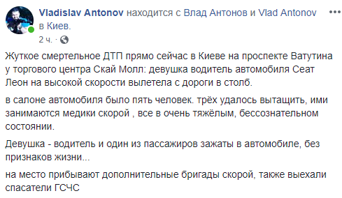 В субботу, 13 октября, в Киеве произошла смертельная авария. Об этом сообщает в Facebook "ДТП. Киев".