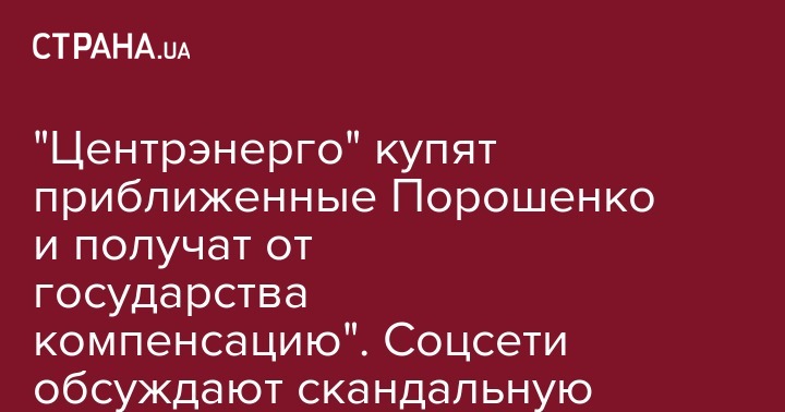 "Центрэнерго" купят приближенные Порошенко и получат от государства компенсацию". Соцсети обсуждают скандальную приватизацию крупнейшей энергокомпании