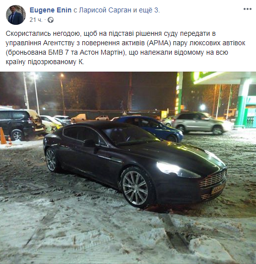 Отметим, что Печерский районный суд Киева вынес решение о передаче автомобиля Курченко Aston Martin в управление Национального агентства по выявлению, розыску и управлению коррупционными активами еще в августе.