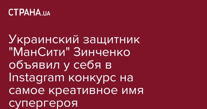 Украинский защитник "МанСити" Зинченко объявил у себя в Instagram конкурс на самое креативное имя супергероя