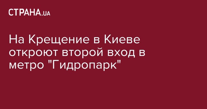 На Крещение в субботу, 19 января, в Киеве будет открыт восточный вестибюль станции метро "Гидропарк". Об этом сообщается на странице Киевского метрополитена в Facebook.