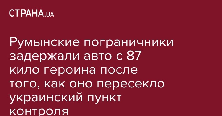 Румынские пограничники задержали авто с 87 кило героина после того, как оно пересекло украинский пункт контроля