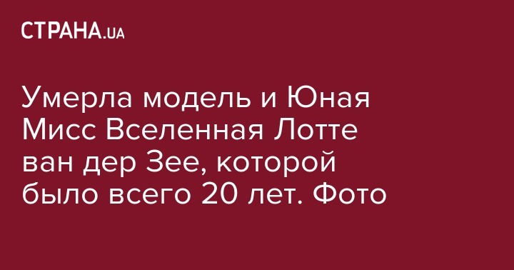 Умерла модель и Юная Мисс Вселенная Лотте ван дер Зее, которой было всего 20 лет. Фото