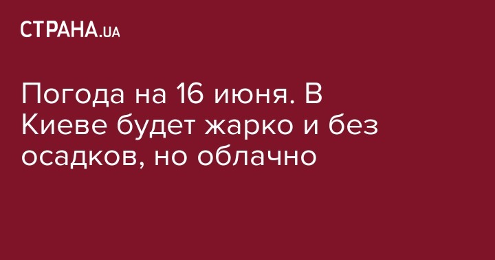 Погода на 16 июня. В Киеве будет жарко и без осадков, но облачно