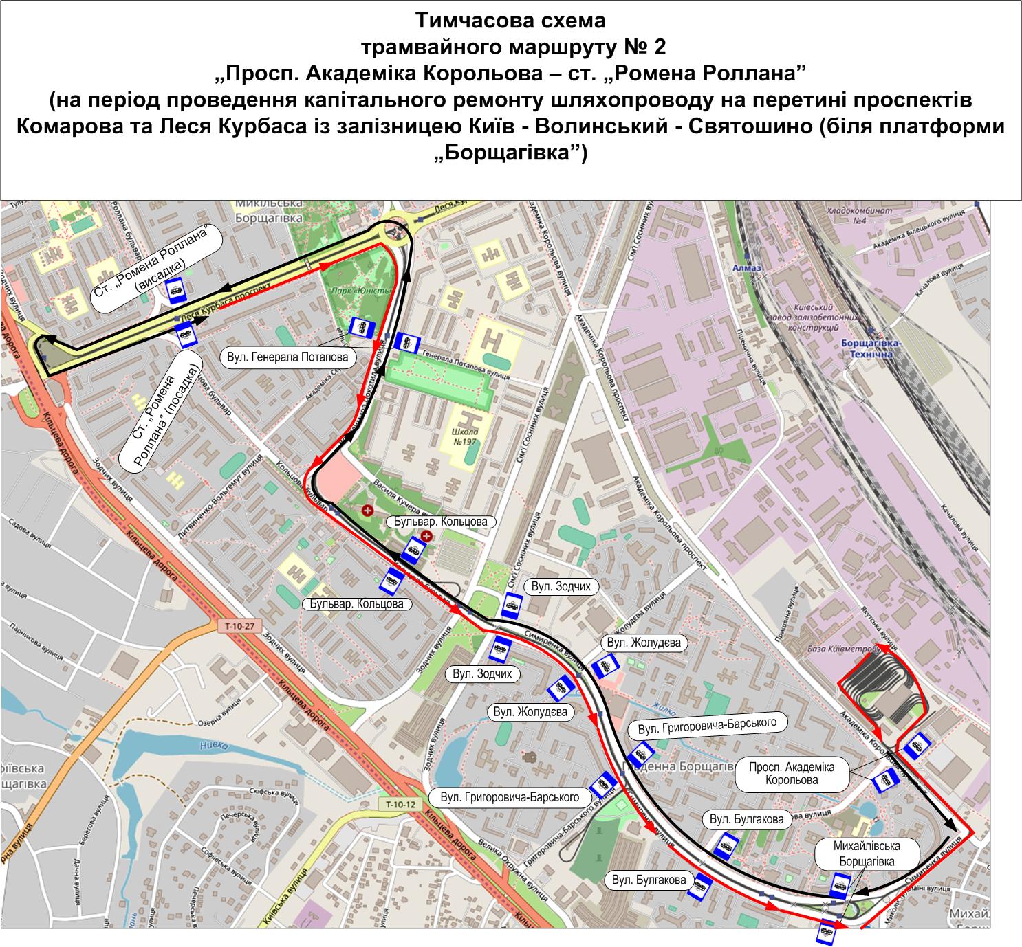 На время реконструкции "Киевпастранс" организует короткий бесплатный трамвайный маршрут №2 от ул. Академика Королева до станции "Ромена Роллана".