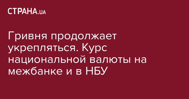 Гривня продолжает укрепляться. Курс национальной валюты на межбанке и в НБУ