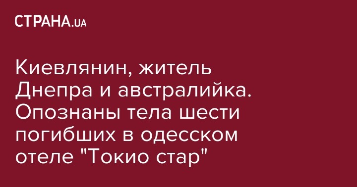 Киевлянин, житель Днепра и австралийка. Опознаны тела шести погибших в одесском отеле "Токио стар"