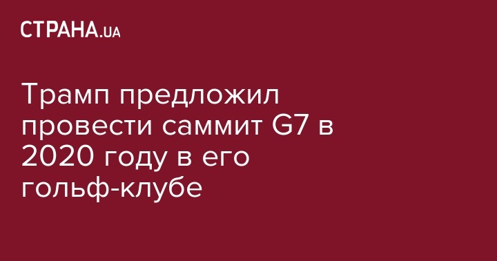 Президент США Дональд Трамп предложил провести саммит Большой семерки (G7) в 2020 году на принадлежащем ему гольф-курорте Trump Doral в Майами. Такое предложение он внес перед пресс-конференцией с канцлером Германии Ангелой Маркель во время встречи лидеров G7 во французском Биаррице, сообщает Bloomberg.