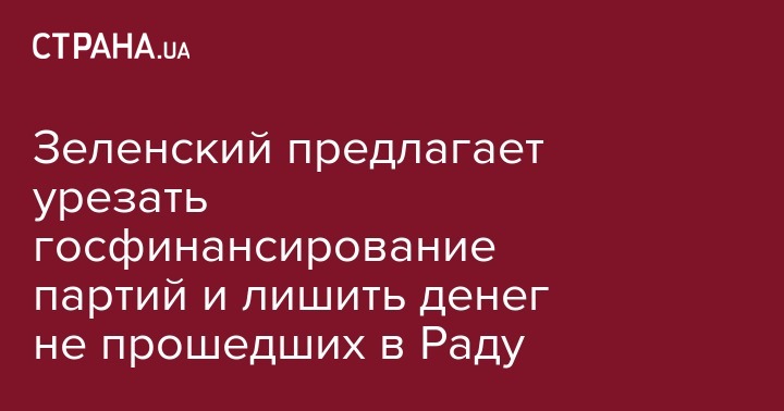 Зеленский предлагает урезать госфинансирование партий и лишить денег не прошедших в Раду