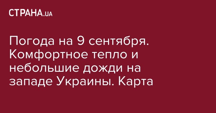 Погода на 9 сентября. Комфортное тепло и небольшие дожди на западе Украины. Карта