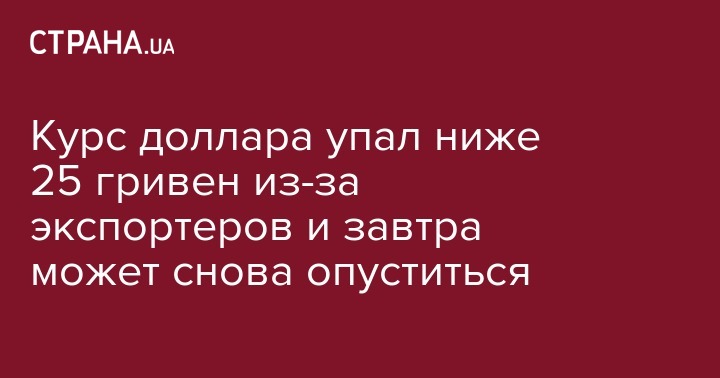 Курс доллара упал ниже 25 гривен из-за экспортеров и завтра может снова опуститься
