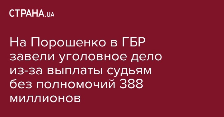 Уточняется, что уголовное производство зарегистрировано 3 июля 2019 по факту возможного совершения бывшим президентом Украины Порошенко и другими должностными лицами преступлений из-за несвоевременного назначения судей на должности, повлекшее тяжкие последствия в виде безосновательной выплаты из государственного бюджета заработной платы судьям, которые не осуществляли правосудие.
