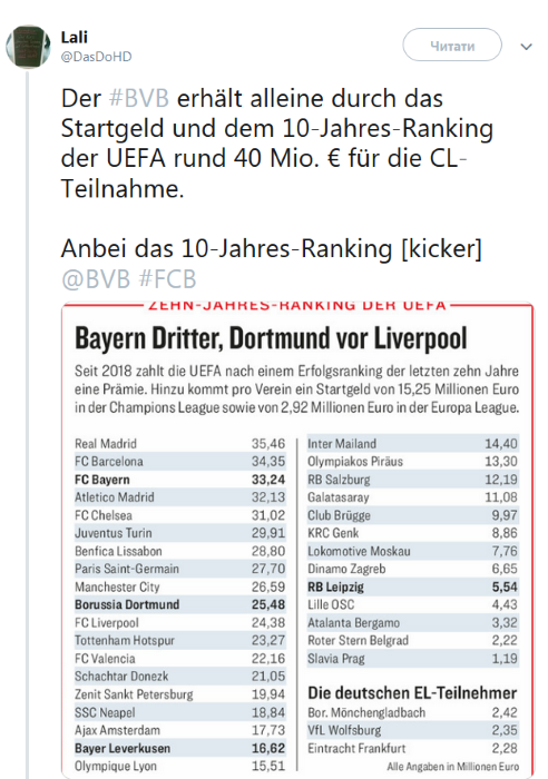 Конкретная сумма выплат для каждой команды высчитывалась, учитывая ее рейтинг в таблице коэффициентов УЕФА за последние 10 лет. Для Шахтера в итоге чек и составил 21,05 миллиона евро.