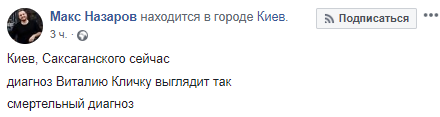 "Киев, Саксаганского сейчас. Диагноз Виталию Кличку выглядит так. Смертельный диагноз", – написал телеведущий Макс Назаренко.