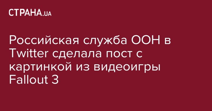 Российская служба Организации Объединенных Наций в своем Twitter рассказала об ущербе экологии из-за военных конфликтов по всему миру. К тексту они добавили скриншот из постапокалиптической игры Fallout 3. Однако вскоре они поменяли картинку на другую.