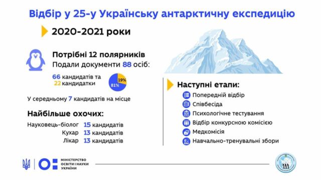 С 1 ноября проходит конкурс от Министерства образования и науки для набора команды в двадцать пятую Украинскую антарктическую экспедицию (УАЭ) на 2020-2021 год. Об этом сообщает Национальный антарктический научный центр.