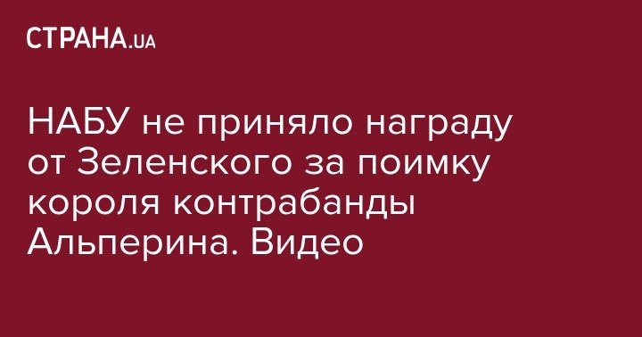 НАБУ не приняло награду от Зеленского за поимку короля контрабанды Альперина. Видео