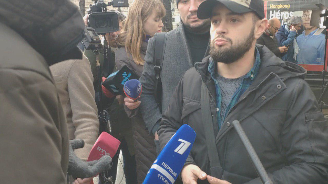 Как сообщает иресурс, флаг поднял российский журналист "Первого канала" и забрал его собой. Все произошло в пресс-центре на улице возле Елисейского дворца.