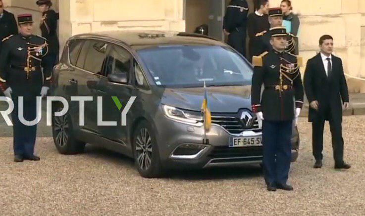 Зеленский приехал в Елисейский дворец на Рено, Меркель - на Мерседесе, Путин - на российском лимузине. Фото