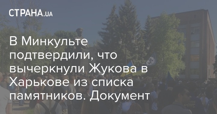 В Министерстве культуры на запрос "Страны" официально заявили, что вычеркнули восстановленный памятник Жукову в Харькове из списка памятников. Об этом говорится в приказе министерства, которого на сайте ведомства нет.