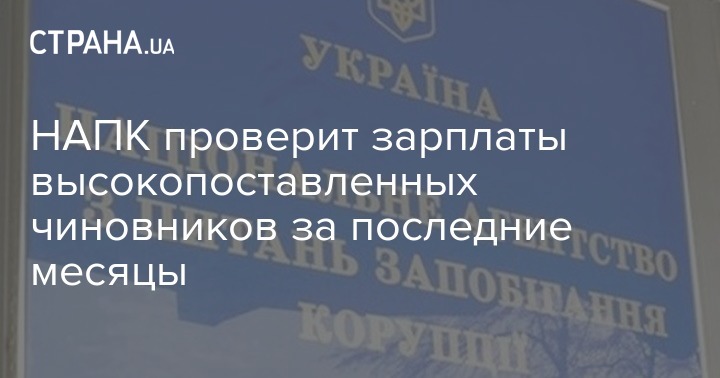 Национальное агентство по предупреждению коррупции (НАПК) направило запросы для уточнения зарплат, начисленных высоким должностным лицам в последние месяцы 2019 года.