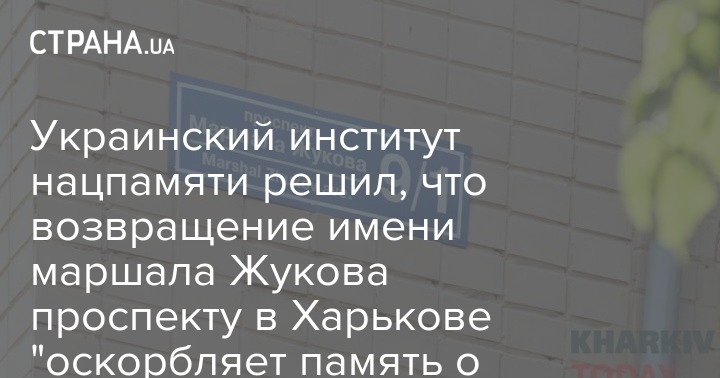 "Украинский институт национальной памяти подчеркивает, что решение Харьковского городского совета о переименовании проспекта Петра Григоренко в маршала Жукова от 26 февраля 2020 года провоцирует войны памяти, оскорбляет память о ветеранах Второй мировой войны, является незаконным и не способствует консолидации общества", - сказано в заявлении.