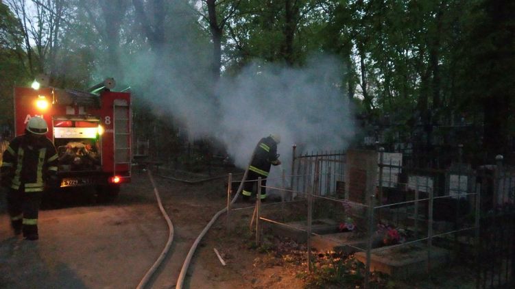 Сообщается, что спасателям стало известно о пожаре на Байковом кладбище в Голосеевском районе Киева вечером в четверг. Прибыв на место происшествия, пожарные установили, что огонь распространился на площадь в 100 квадратных метров, горел мусор.