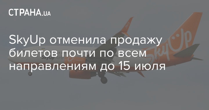 В авиакомпании SkyUp Airlines (Киев) закрыли продажу билетов по большинству направлений до 15 июля этого года включительно.